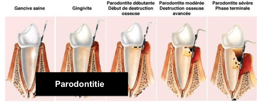 Les maladies parodontales sont des atteintes plus ou moins profondes des tissus de soutient dentaire (gencive, os). Elles concernent près de la moitié des patients et à un stade avancé, peuvent aboutir à la perte des dents.